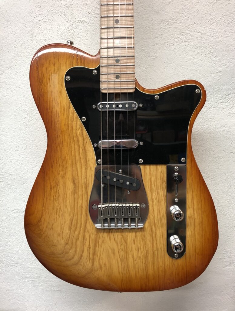 Viimeistely: satiini-nitrolakka, tai open grain nitro